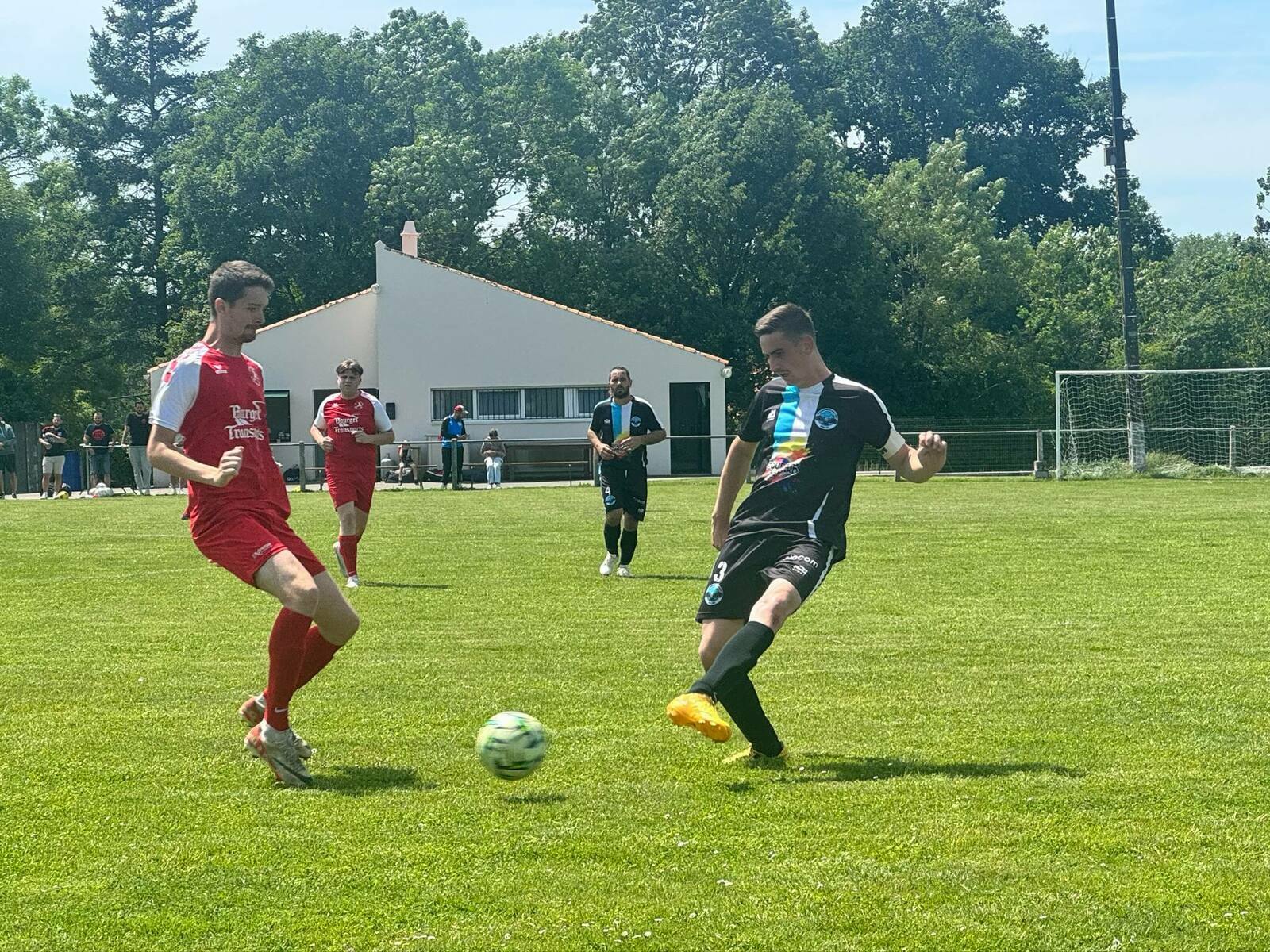 l 'équipe démarre bien la rencontre et ouvre la marque par Nino qui part seul inscire le 1er but (5') . Les visiteurs reviennent rapidement au score d une superbe frape au 25 M . Boosté par ce but ils me montrent de plus en plus dangereux à contrario de nous lors de ce 1er acte ou nous jouons pas en " équipe " . Paco marque à la 23' sur une passe de Christopher . Longeville va ensuite marquer par 2 fois avant la pause sur corner 34' et sur pénalty 39' .