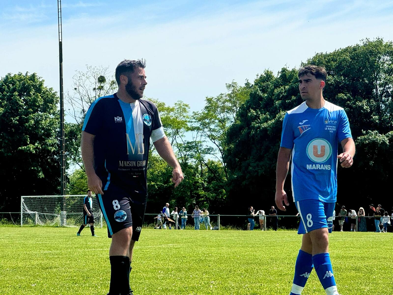 l 'équipe rentre tout de suite dans son match en étant sérieuse et appliquée dans le jeu . Nous mettons rapidement les visiteurs sous pression en frappant 2 fois les montants dans le premier quart d' heure . L 'ile d' elle va ouvrir la marque contre le cours du jeu .Les hommes de Baptiste continue à jouer malgré ce but et au fur à mesure de l' avancée du match ils vont prendre l' ascendant sur leur adversaire en étant meilleur dans le jeu plus agrressif dans les duels . Marco égalise sur pénalty (57' ) et double la mise suite à un festival de Florian dans la surface qui lui offre un caviar au second poteau ( 65' ) .